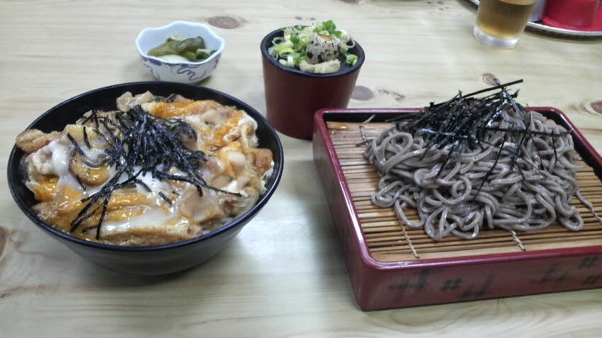 メニューを見ながら何にしようかと?親子丼とざるそば(少し多いような?)を注文。
